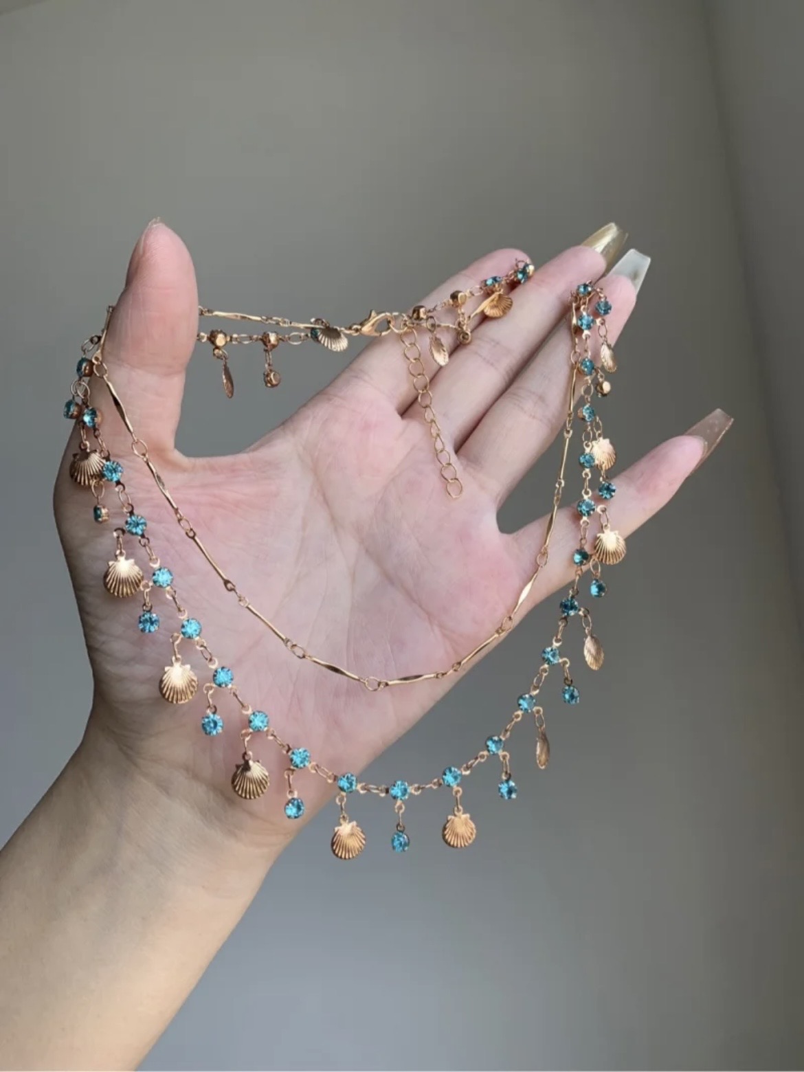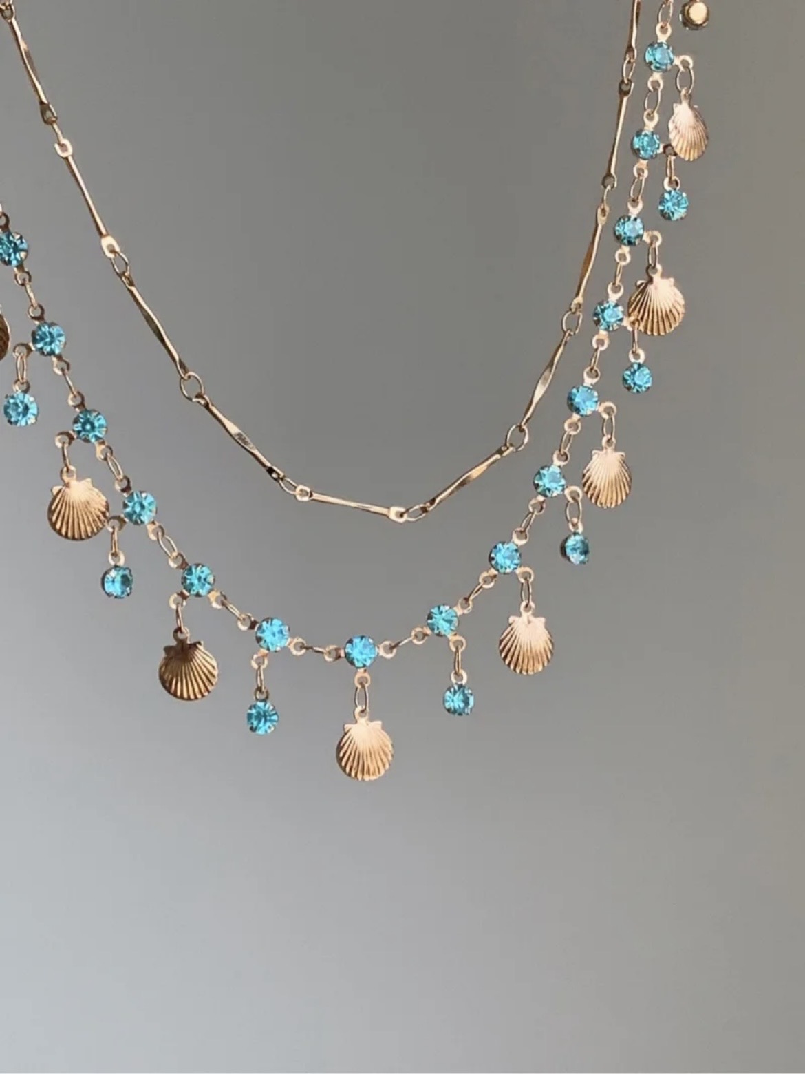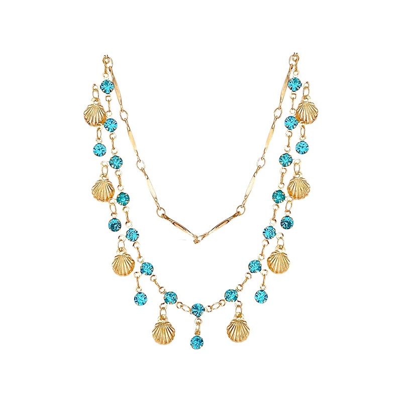 Продукт: двуслоен комплект колие и гривна със син циркон и мида