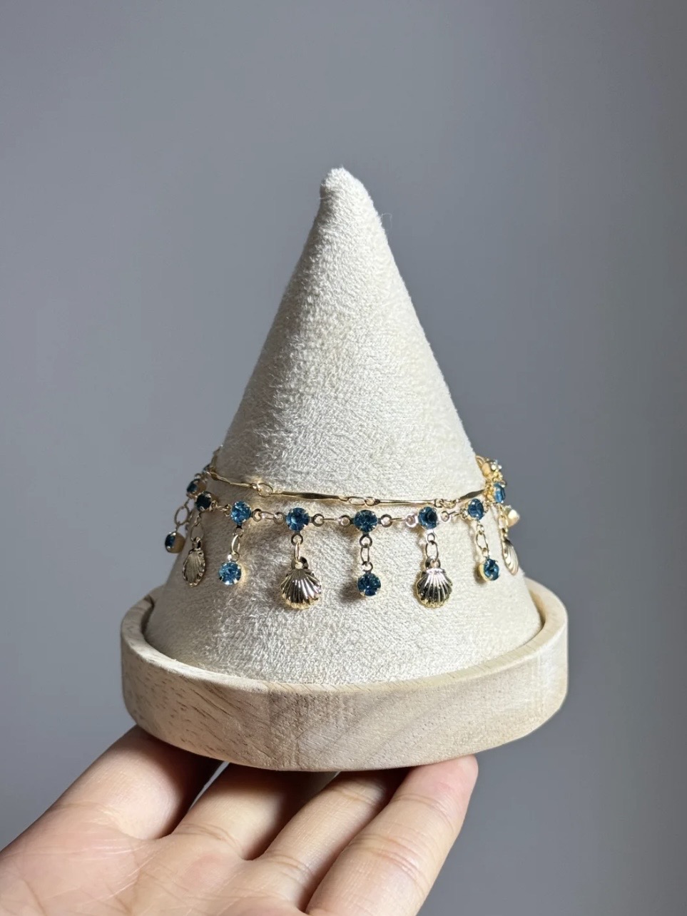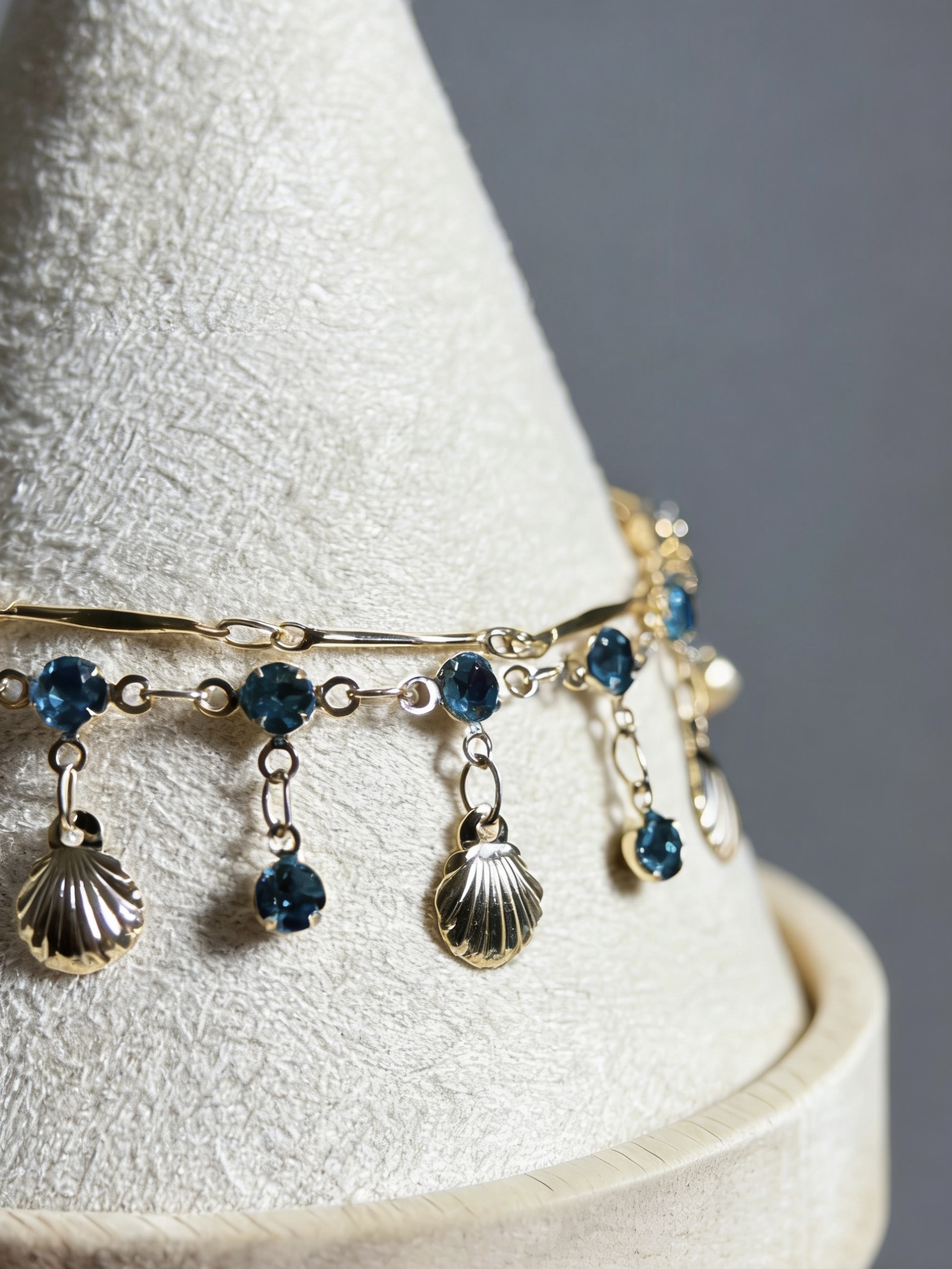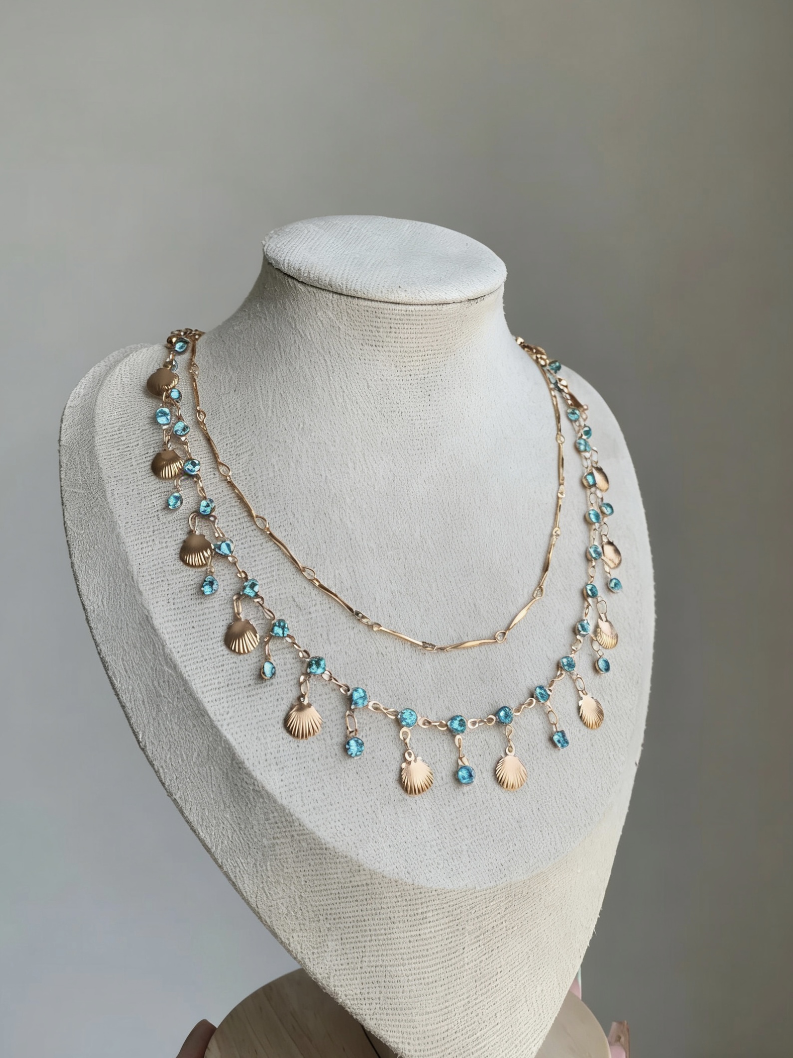 Продукт: двуслоен комплект колие и гривна със син циркон и мида