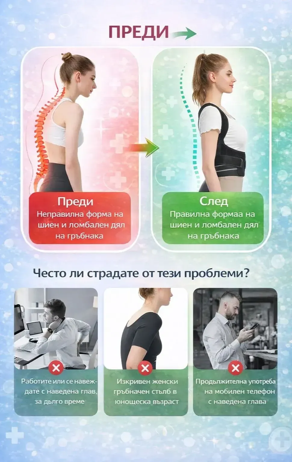 вечно се сбогувай със дразнещите болки, предлага силна подкрепа на талията и лумбалните мускули, изправа раменете и добавя сантиметри към височината